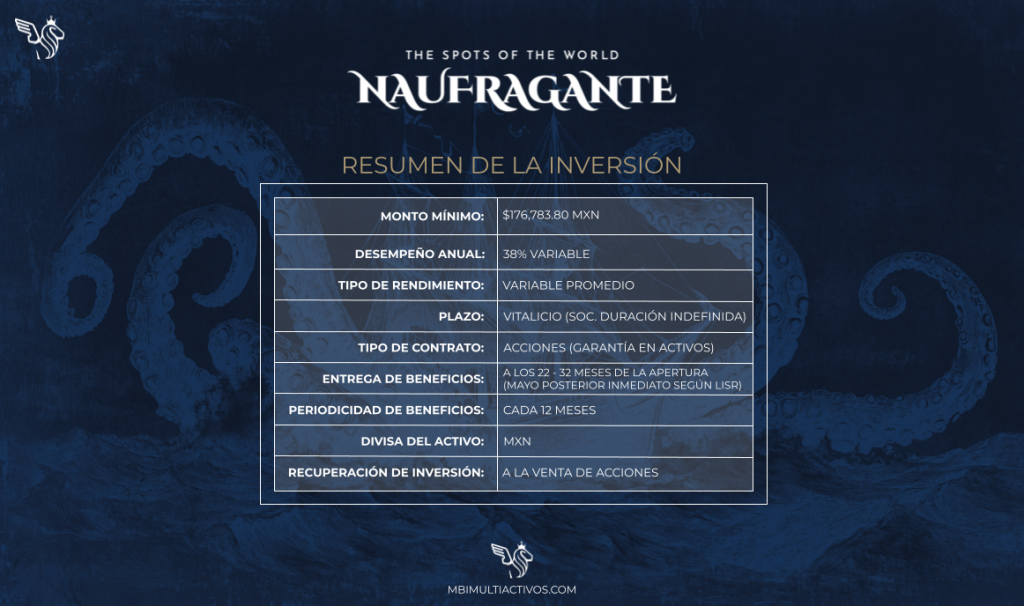 Restaurante Naufragante, ubicado a pocos metros de la Avenida Chapultepec, en la colonia Roma, Ciudad de México, te permite invertir siendo socio accionista propietario del negocio de forma vitalicia por medio de la compra de acciones preferentes.
